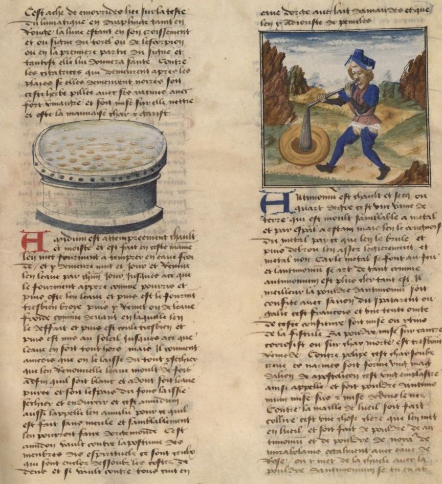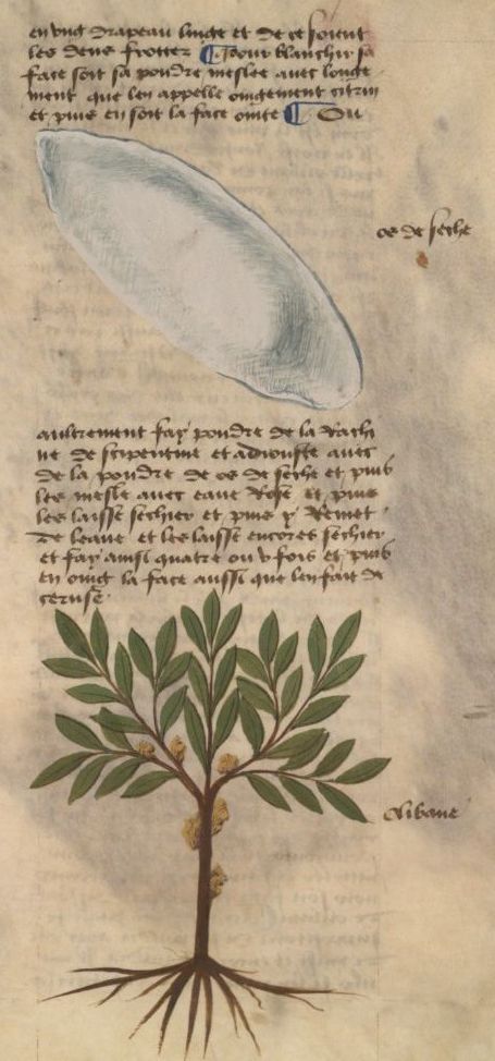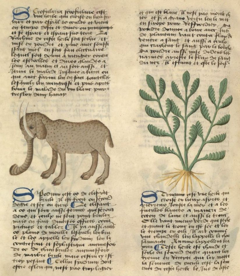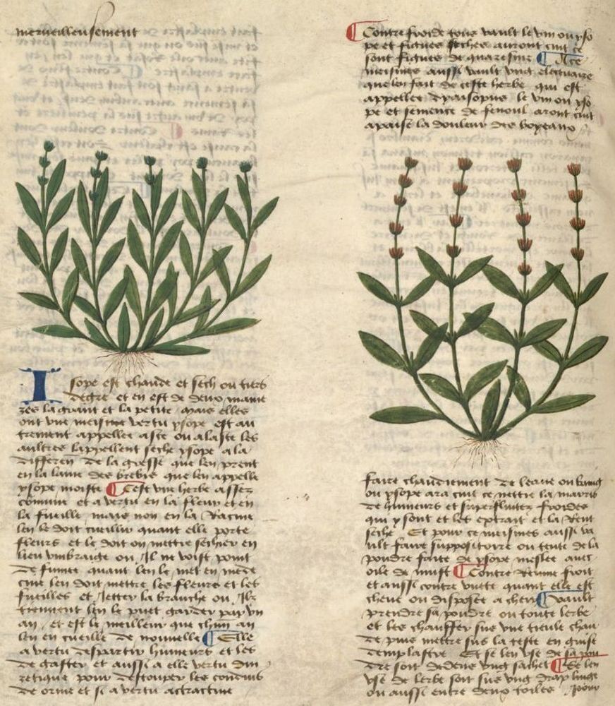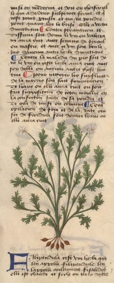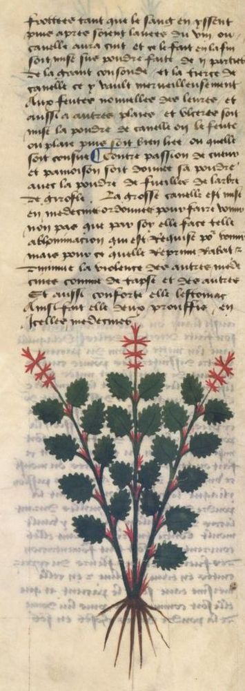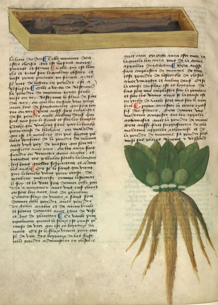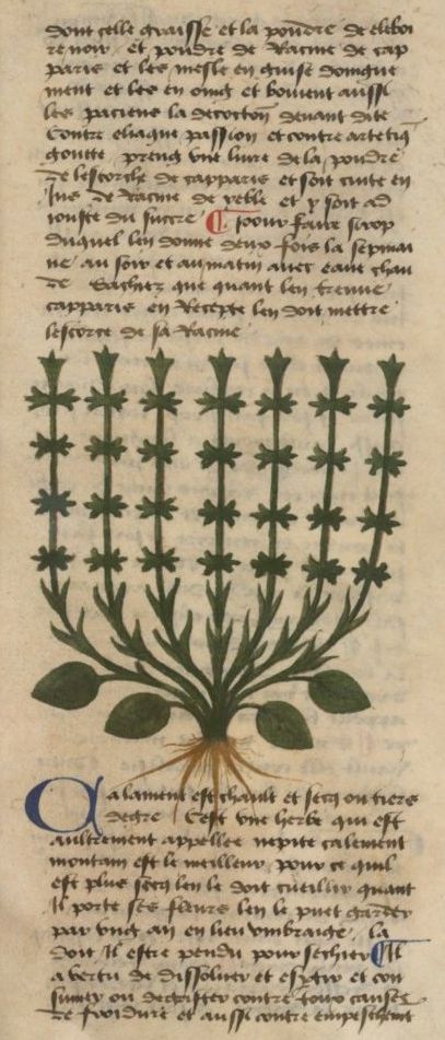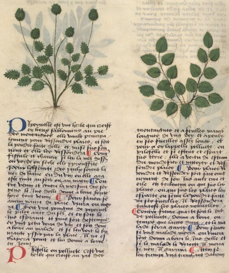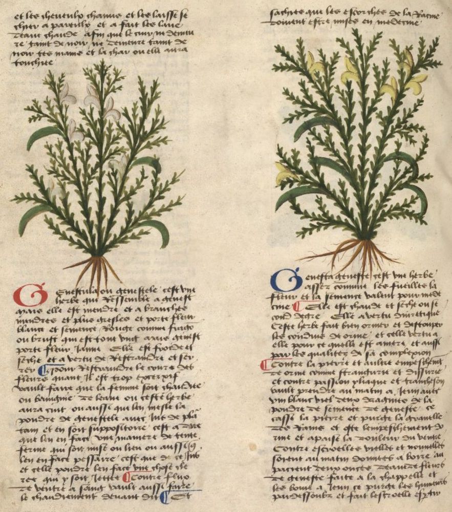 ► Écrit originellement au XII par un médecin italien et essentiellement basé sur le classique précédent, De la Matière médicale, cet herbier est un traité de pharmacopée recensant les plantes médicinales du moyen-âge.