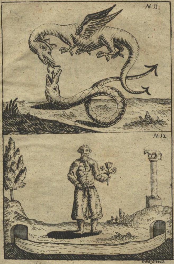 ■ Nous avons comparé quatre éditions, deux à la Bibliothèque d’État Universitaire de Dresde l’une de 1735 et l’autre de 1760, celle de la Bibliothèque de l’École polytechnique fédérale de Zurich ainsi qu’une autre de 1760 dont nous ignorons la provenance. Les gravures sont quasi-identiques nous avons alors reproduit les deux éditions de Dresde. Celle de 1760 car elle est de meilleure qualité et celle de 1735 car elle possède des figures que la précédente n’a pas. De plus, cette version est plus ancienne et plus longue, nous avons donc pris son organisation en référence car toutes les éditions proposent les figures dans des ordres différents.