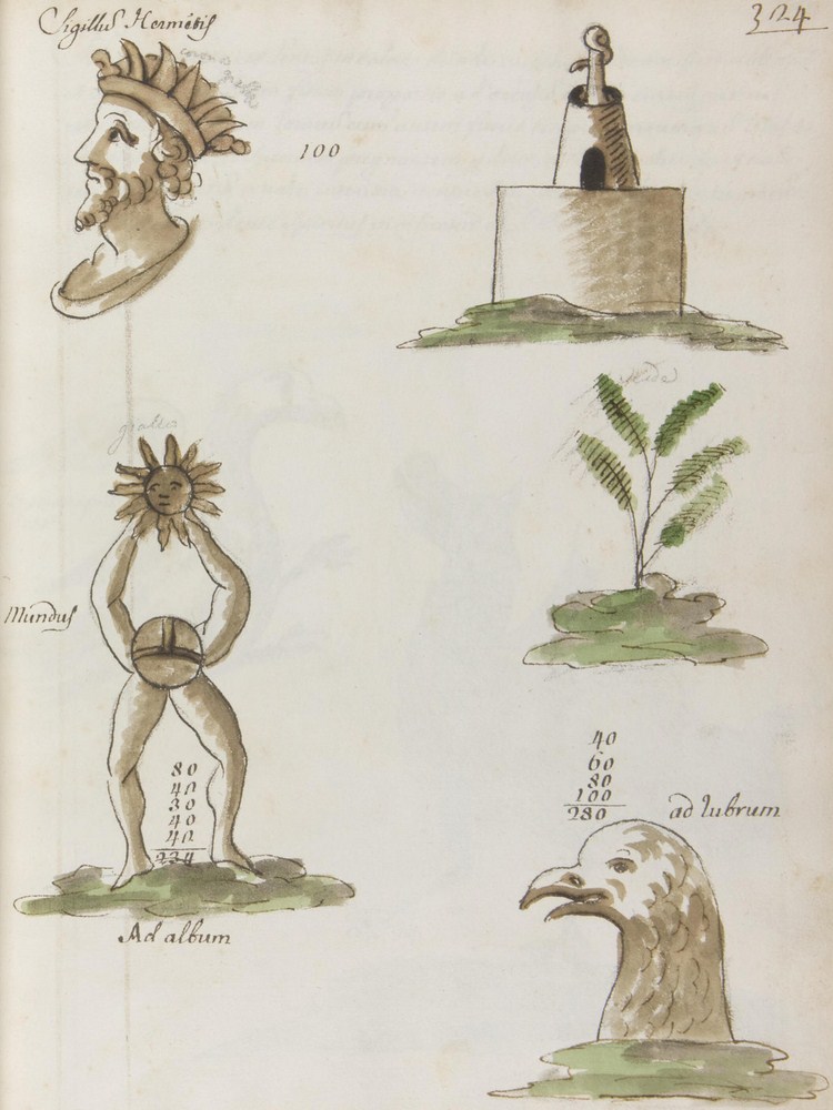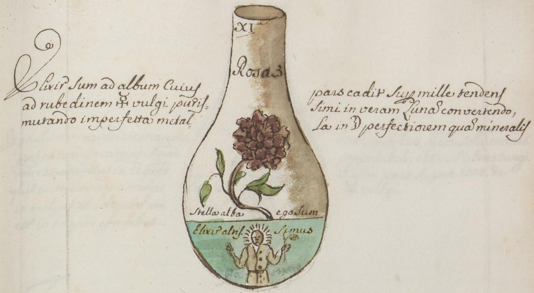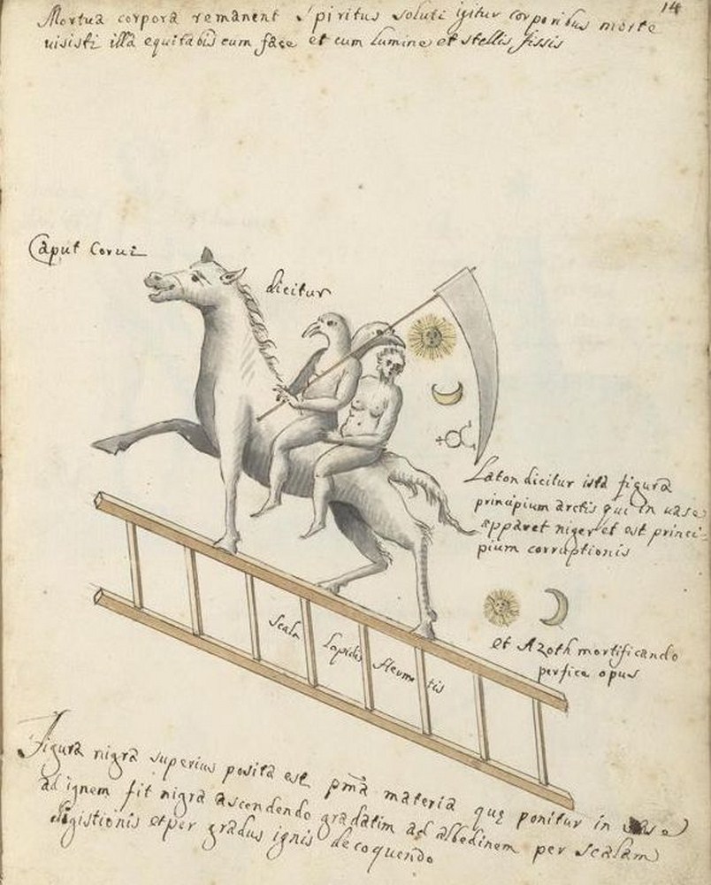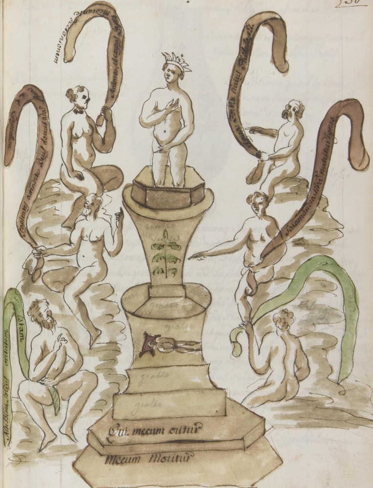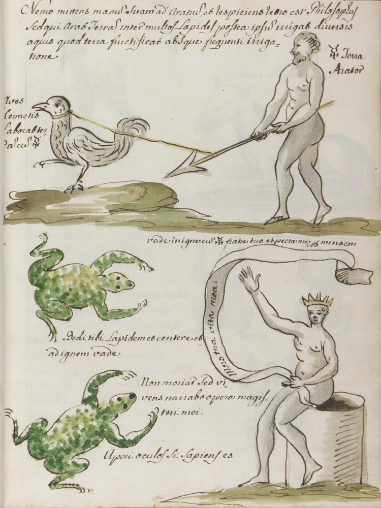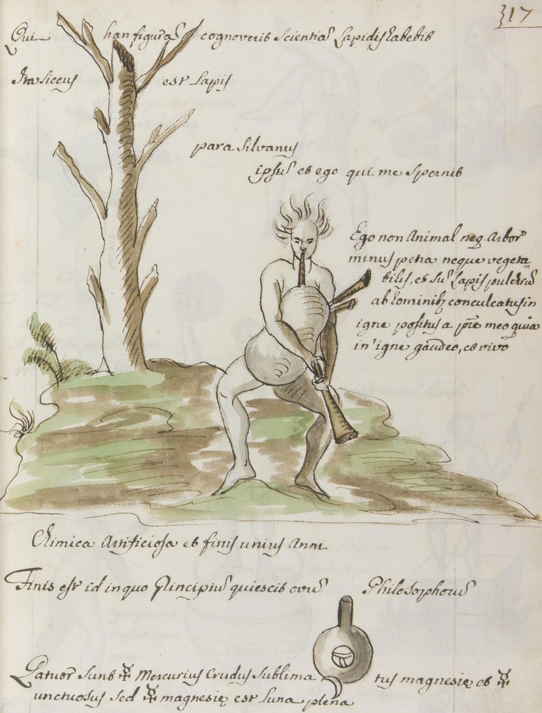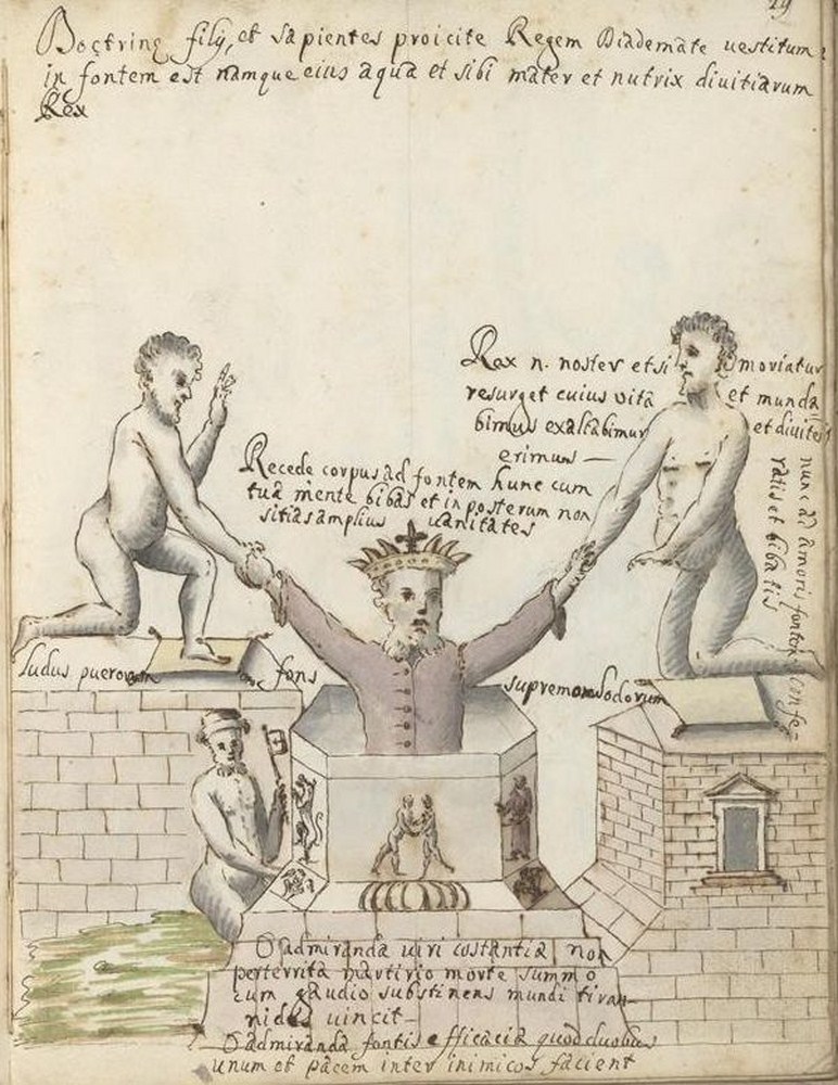 ► Cet ouvrage dont l’iconographie est unique recèle une note dactylographiée d’un "Collectionneur de manuscrits occultes bien connu" dans l’exemplaire Wellcome. La note permet de tirer les informations suivantes : il provient (au moins en partie) probablement d’un manuscrit arabe du XIV. En deux partie, il décrit le processus spirituel puis le processus physique. Le collectionneur - peut-être de nationalité française - avoue n’avoir jamais vu d’illustrations semblables et en si grand nombre même à l’Arsenal ou dans la collection de Stanislas de Guaita.