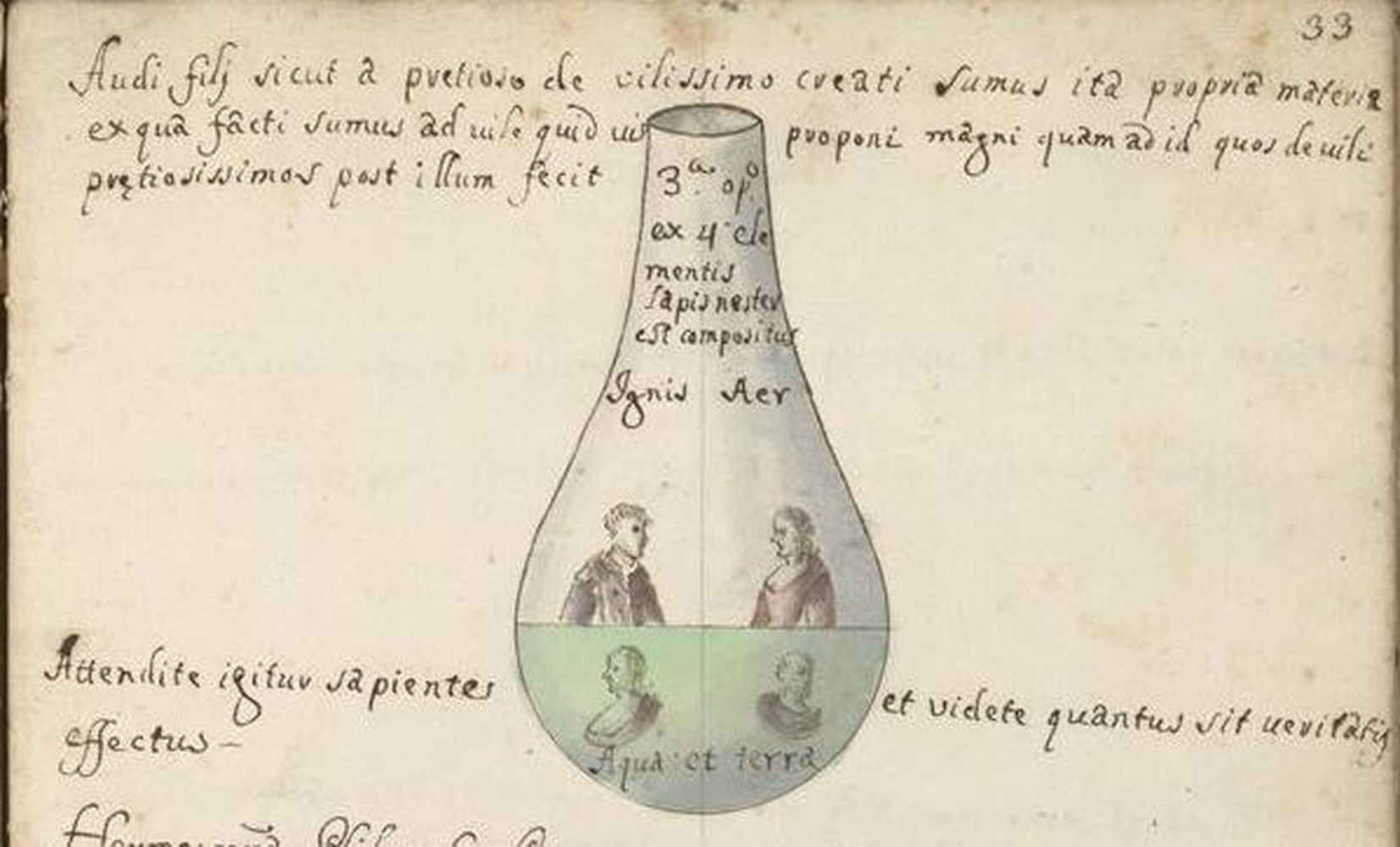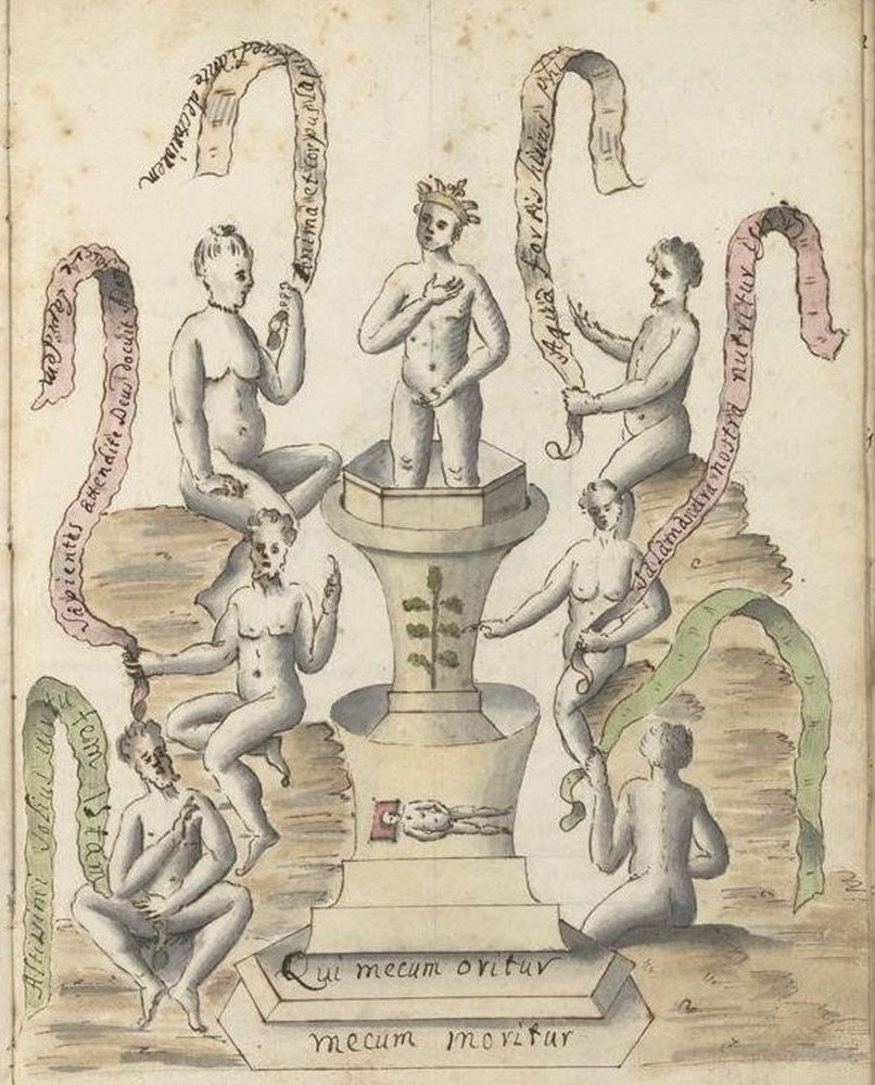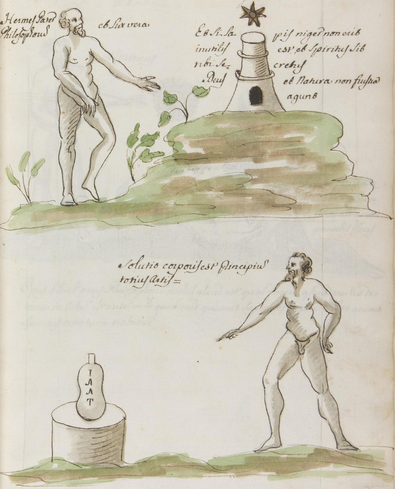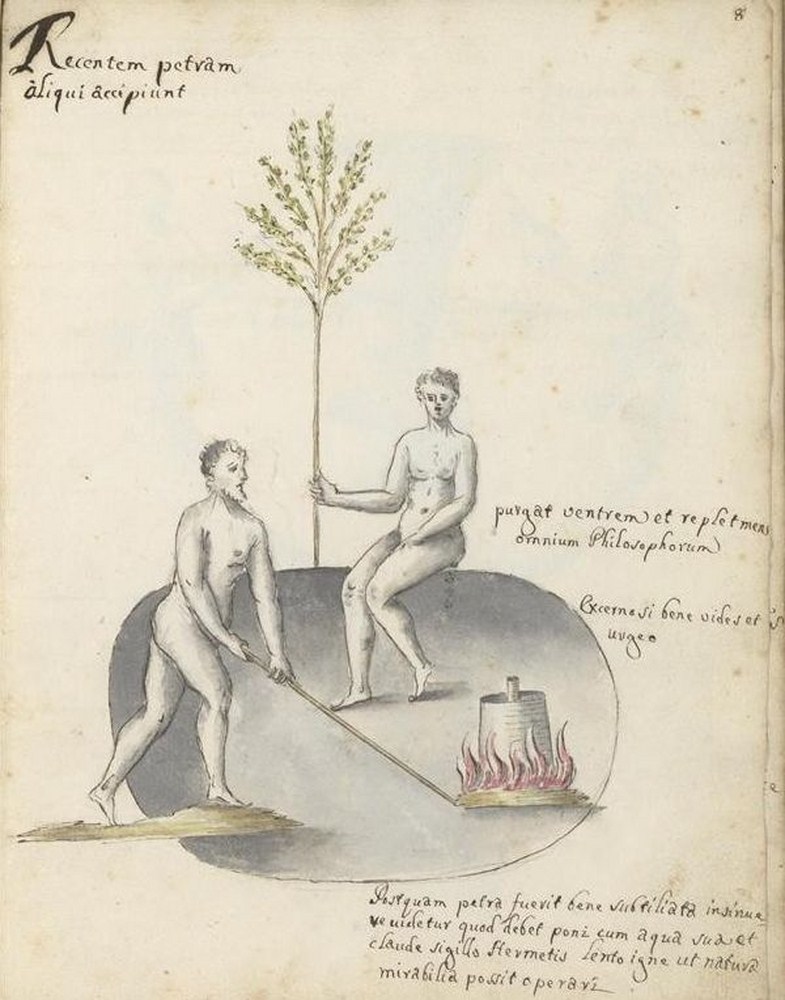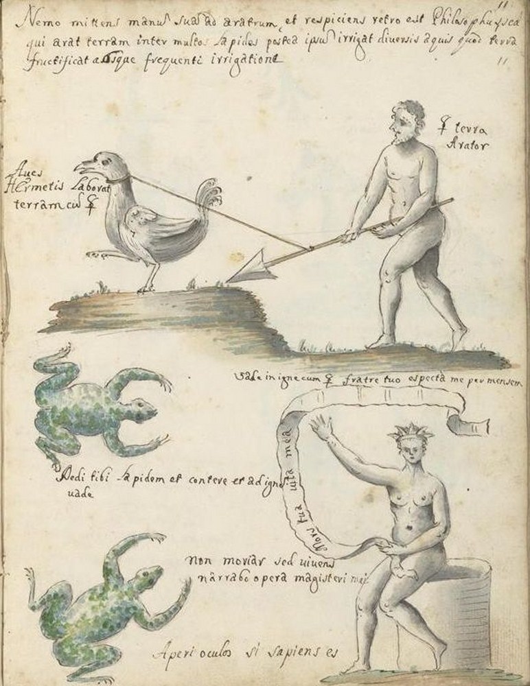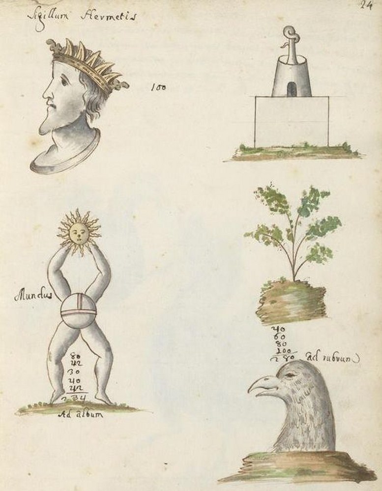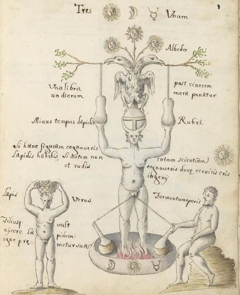 ► Cet ouvrage dont l’iconographie est unique recèle une note dactylographiée d’un "Collectionneur de manuscrits occultes bien connu" dans l’exemplaire Wellcome. La note permet de tirer les informations suivantes : il provient (au moins en partie) probablement d’un manuscrit arabe du XIV. En deux partie, il décrit le processus spirituel puis le processus physique. Le collectionneur - peut-être de nationalité française - avoue n’avoir jamais vu d’illustrations semblables et en si grand nombre même à l’Arsenal ou dans la collection de Stanislas de Guaita.