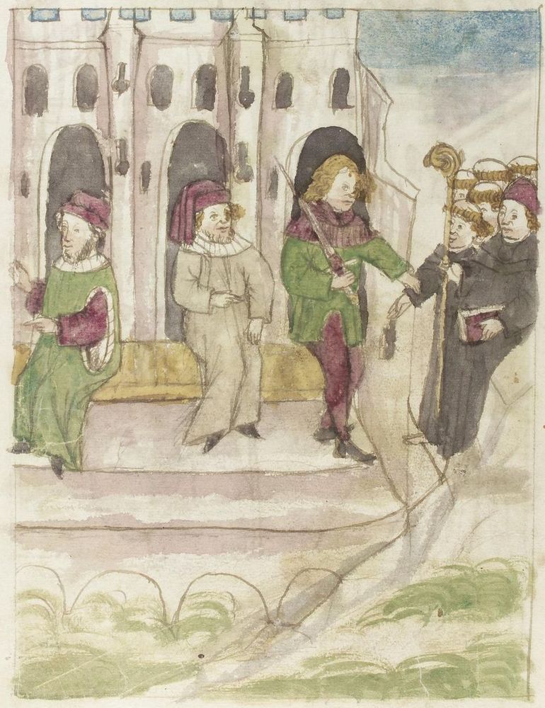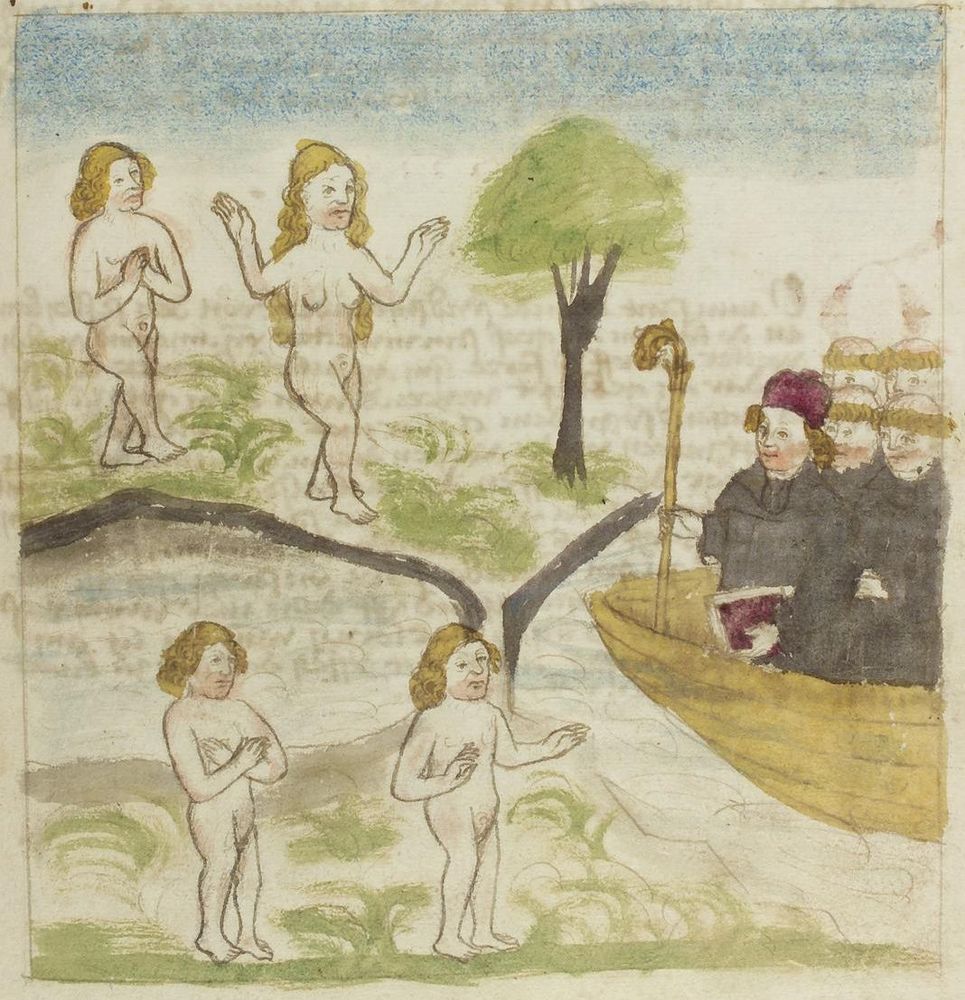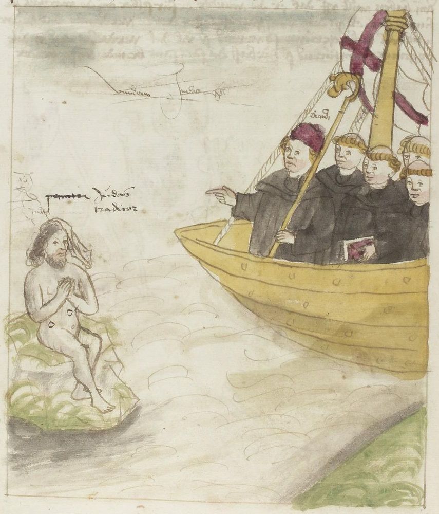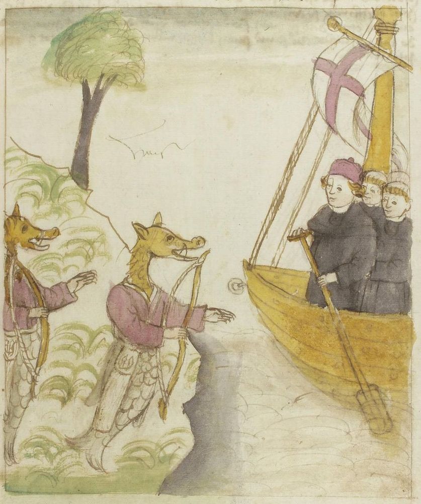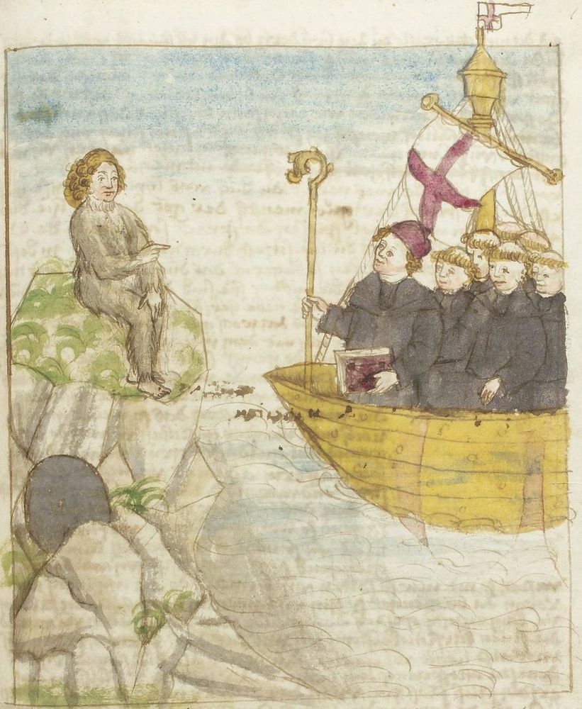 ☩ Illustrations : én. du Voyage de Saint Brendan in Bible historiale (Cod. Pal. germ. 60), 1460. | bs. Bibliothèque universitaire de Heidelberg (Heidelberg, Allemagne).