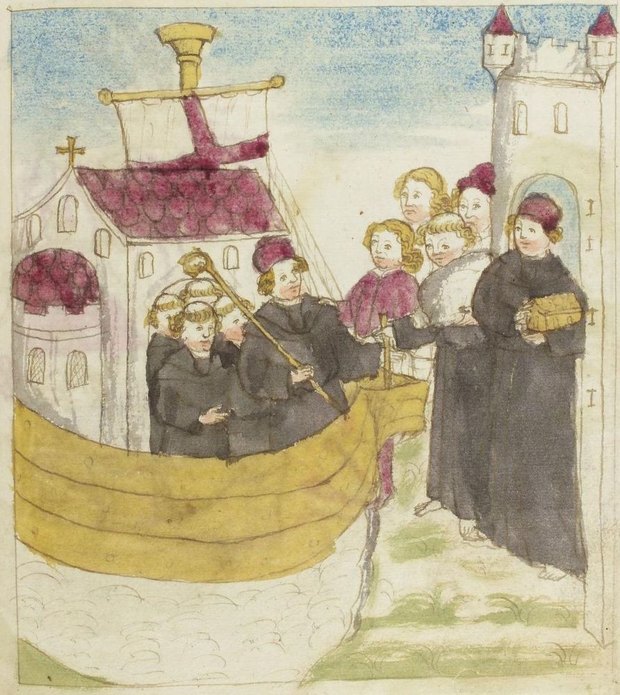 Quand tout fut prêt, saint Brendan dit à ses frères : « Entrez dedans. Remerciez Dieu. Le vent est bon. »
