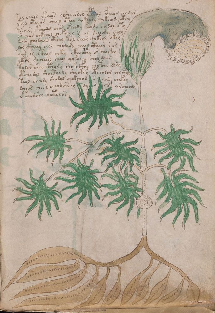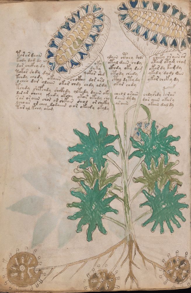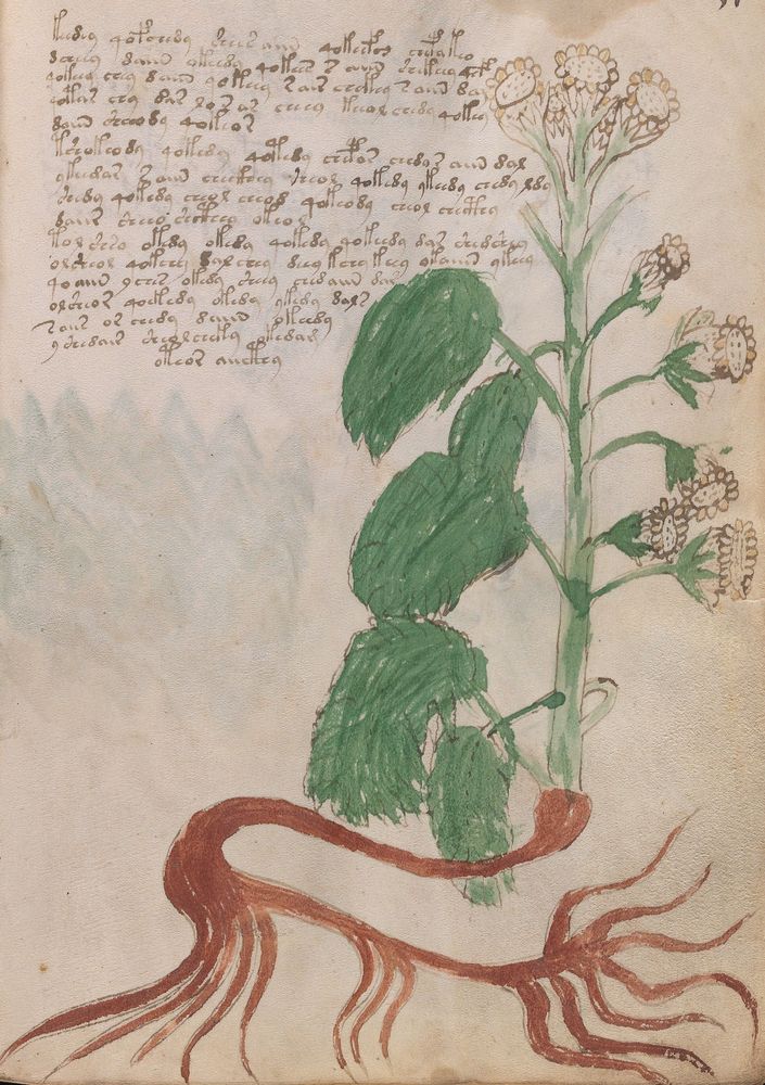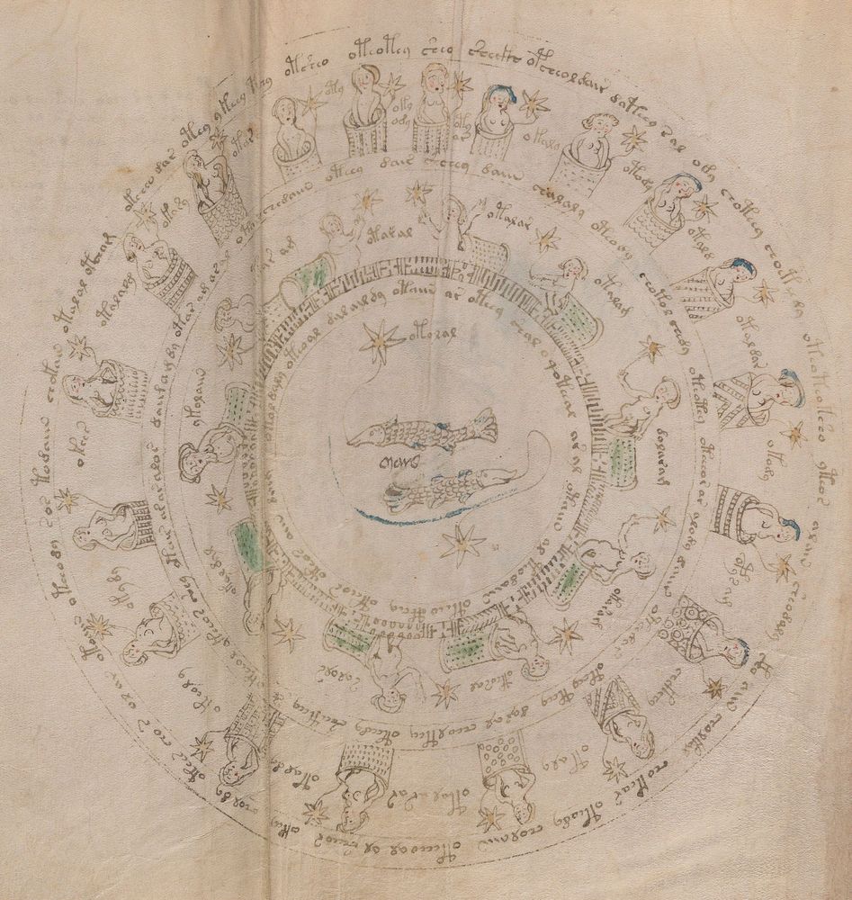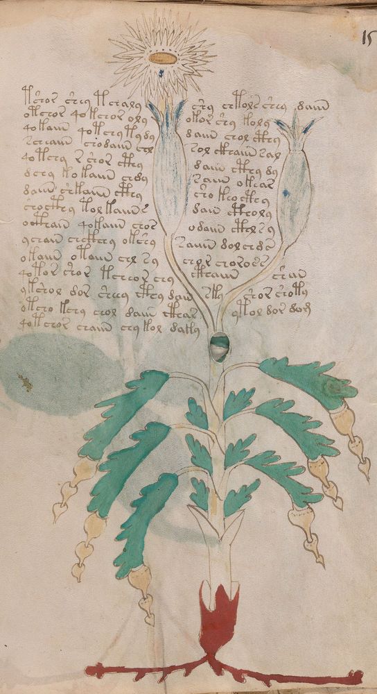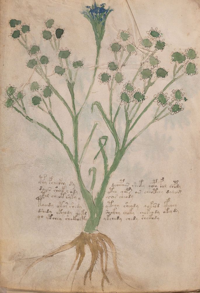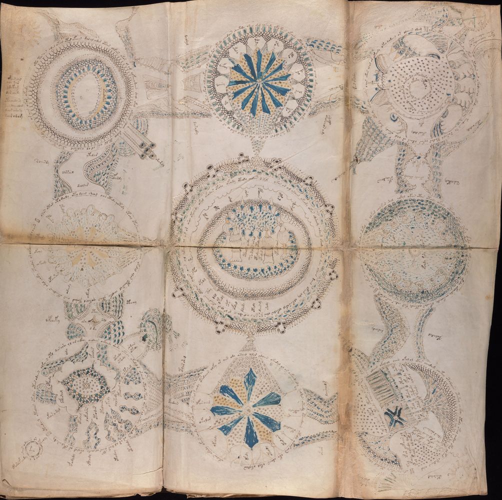 ☩ Illustrations : én. du Manuscrit de Voynich [MS.408], f.XV. | bs. Bibliothèque Beinecke de livres rares et manuscrits (New Haven, États-Unis).