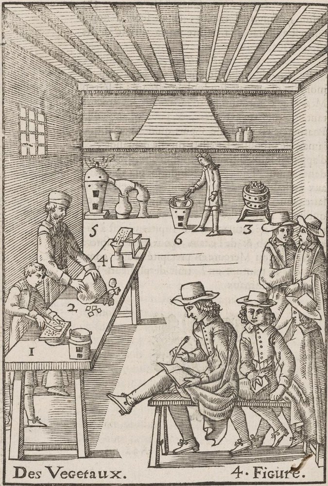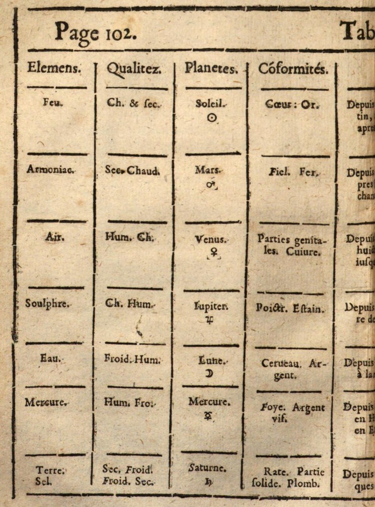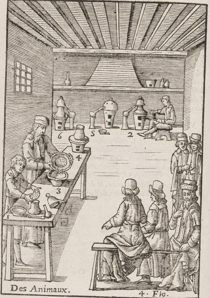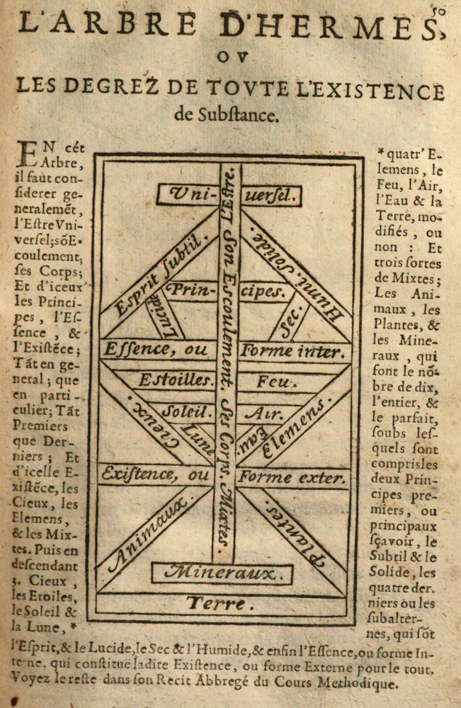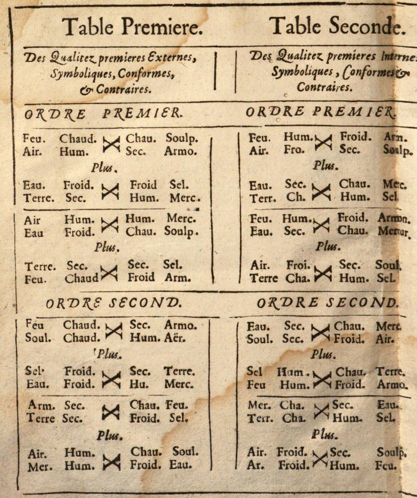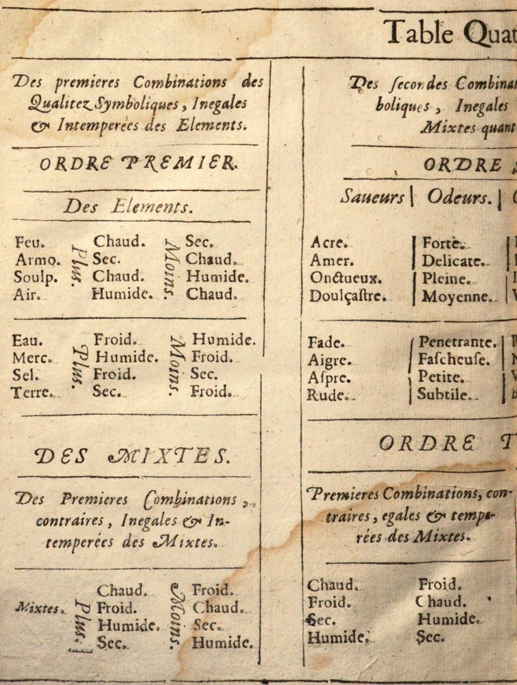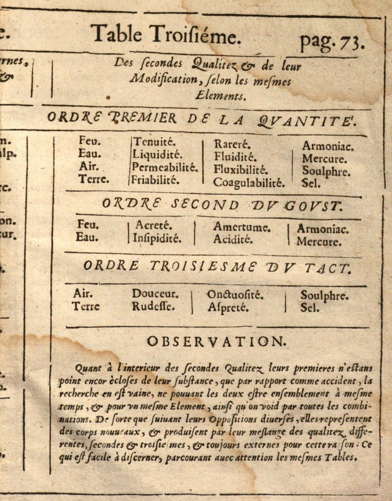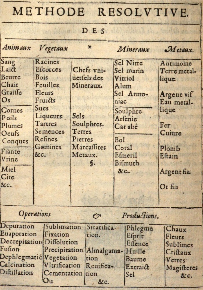 1. Ouvrage de peu de valeur, chimie non dégagée de l’alchimie ; l’ouvrage est divisé en deux parties, ensuite par sections pour la deuxième partie : la Ière traite des Animaux, la 2nd des Végétaux, la 3ème des Minéraux et la 4ème des Métaux.