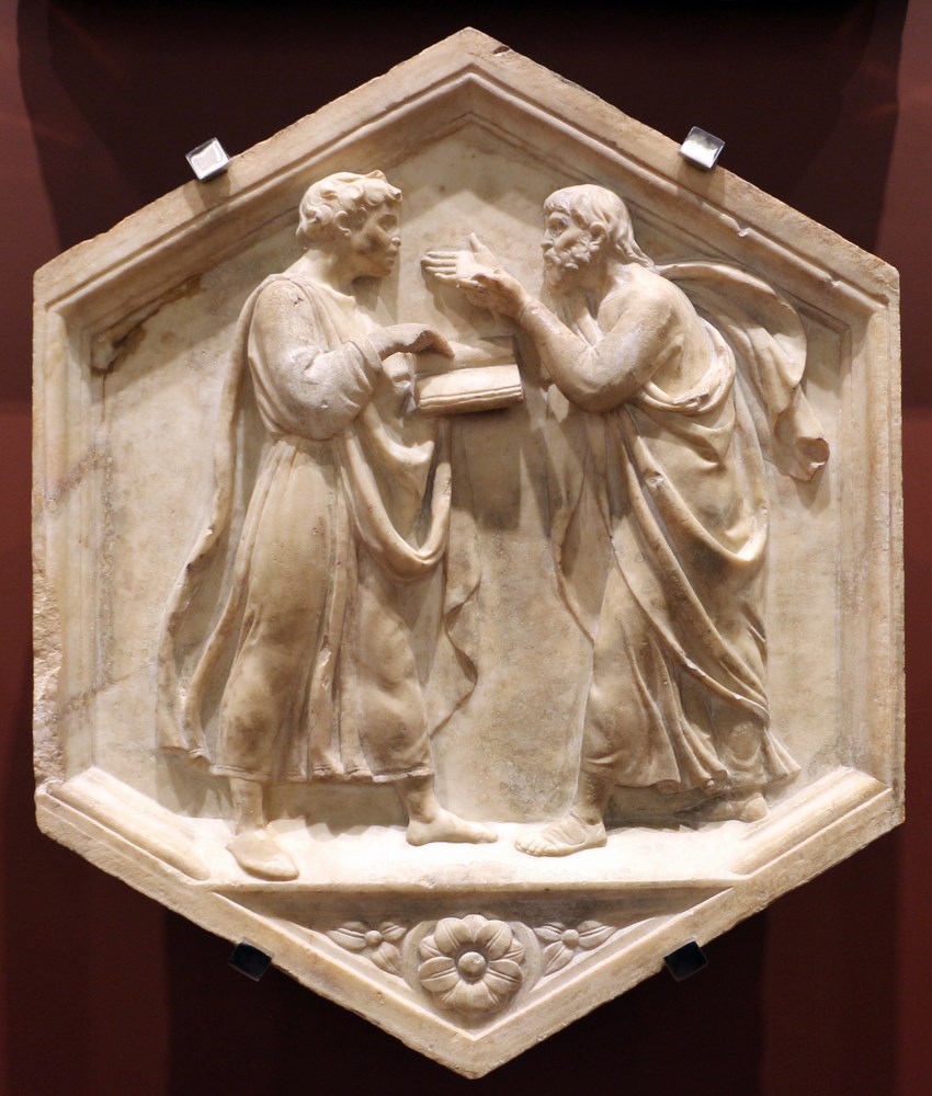 ↳ Il composait lui-même et principalement épopées et hymnes qu’il tirait de thèmes mythologiques qu’il récitait sur la place publique ou à des banquets.