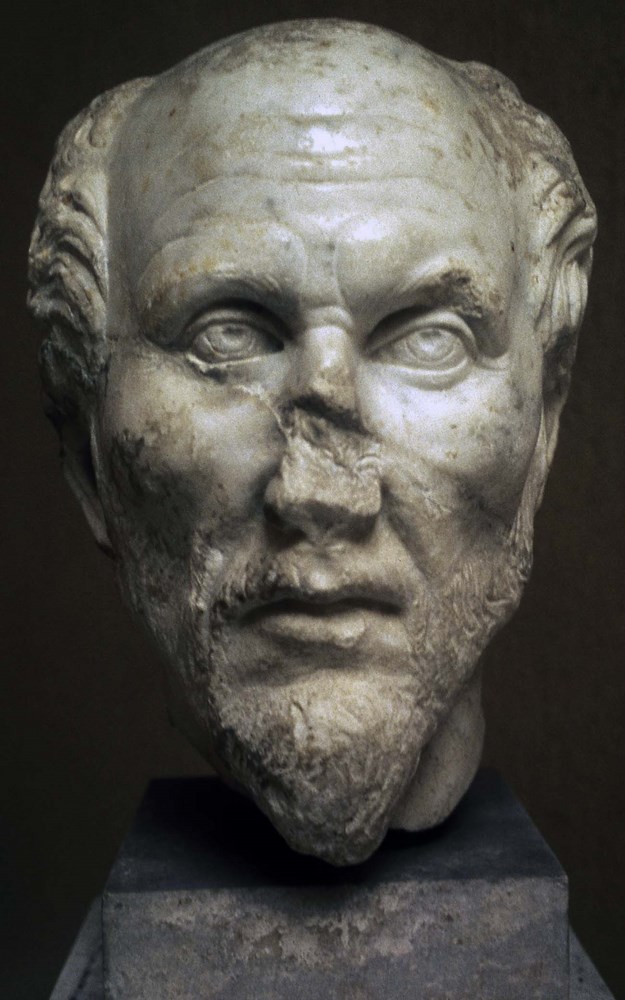 Nom : Tête de marbre blanc identifiée comme représentant Plotin.