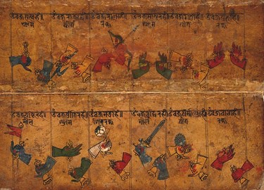 ) rendues disponibles par la Bibliothèque Nationale de France tout en organisant les feuillets comme ils sont montrés dans l’article et en ôtant les crédits d’origine afin de ne pas porter à confusion. En l’état ces numérisations remplacent avantageusement celles tirées de l’ouvrage que Madame De Mallmann à eu l’intention de présenter au bénéfice du Sanscrit 1822, pour des raisons d’ailleurs très légitimes. Si nous arrivons à accéder aux mss. de l’Institut de Civilisation indienne que l’auteur à utilisé dans cet article, nous mettrons évidemment toutes les images à jour. Si vous voulez consulter les illustrations d’origine de l’article, veuillez vous y référer.