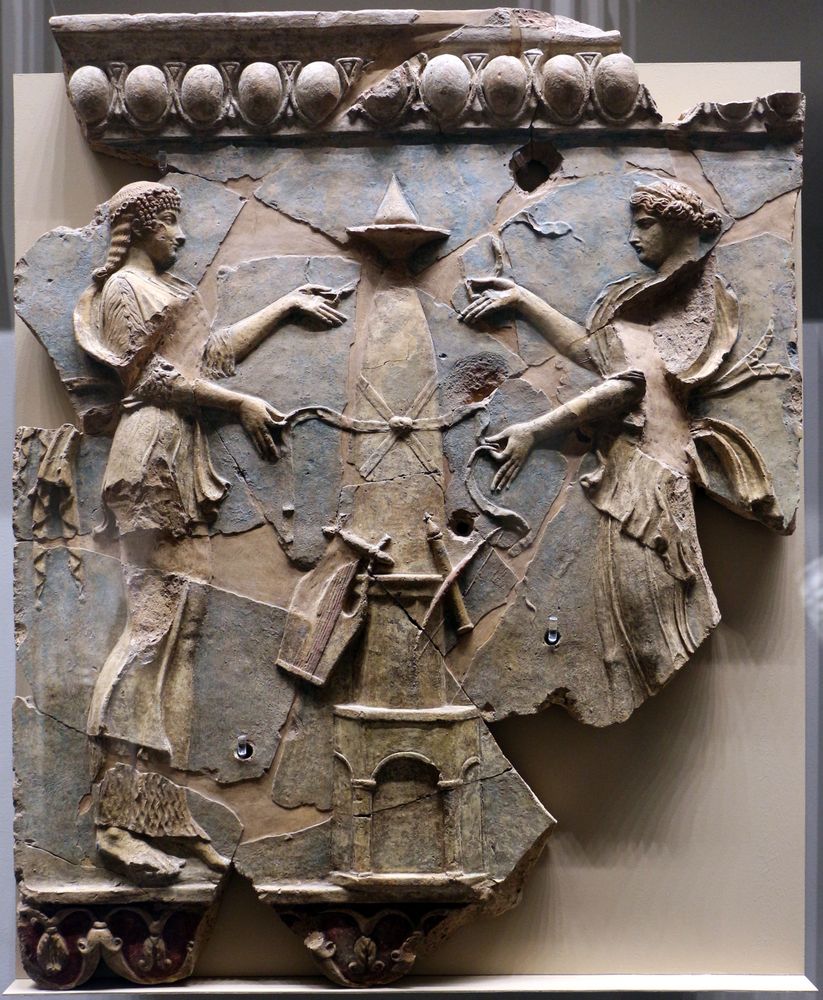 Nom : Femmes autour d’un agyiée (forme aniconique d’Apollon)
