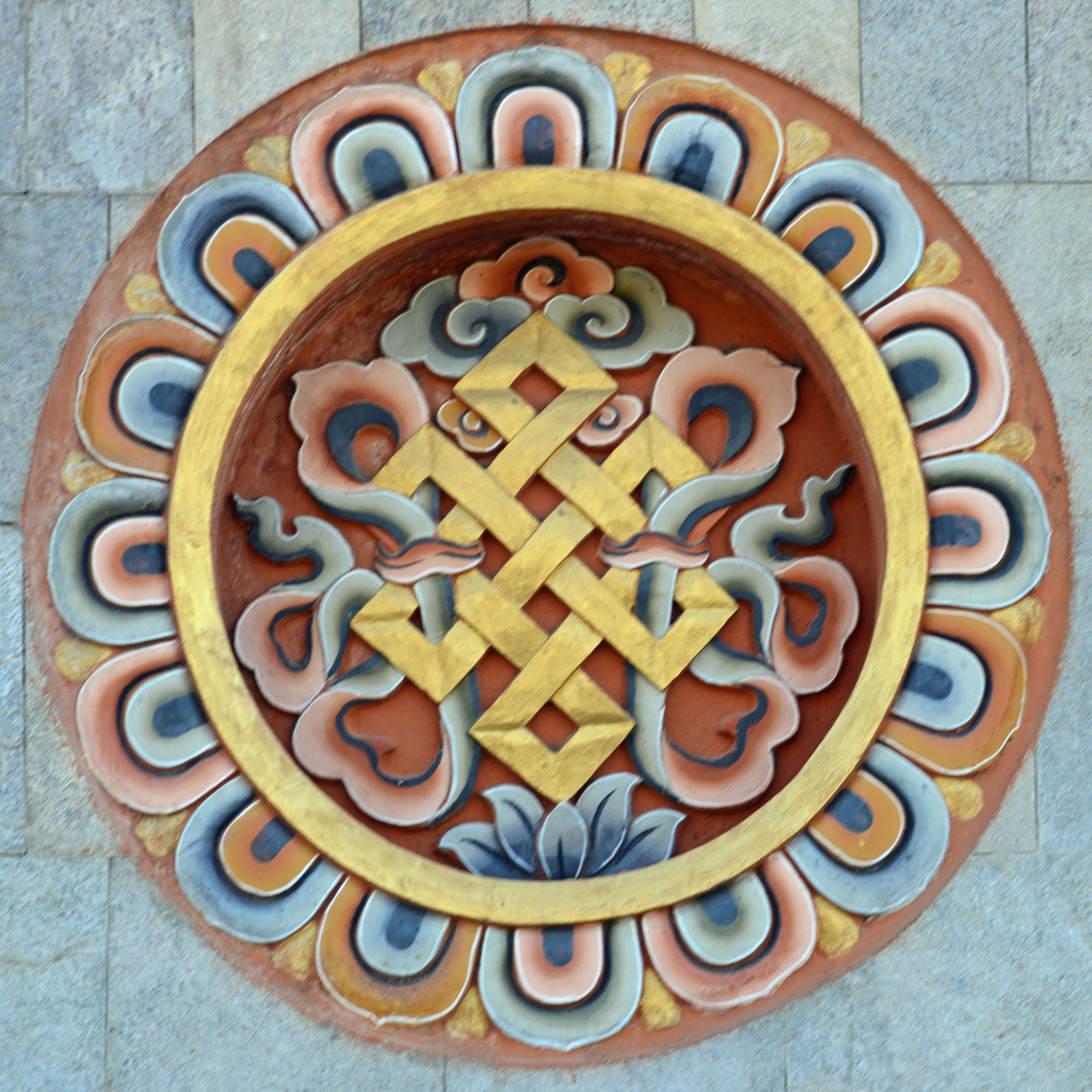 ↳ Dans l’iconographie bouddhique, un gankyil est souvent représenté dans le moyeu de la roue et de même, le moyeu est l’éthique, les rayons, la sagesse et la jante, la concentration.