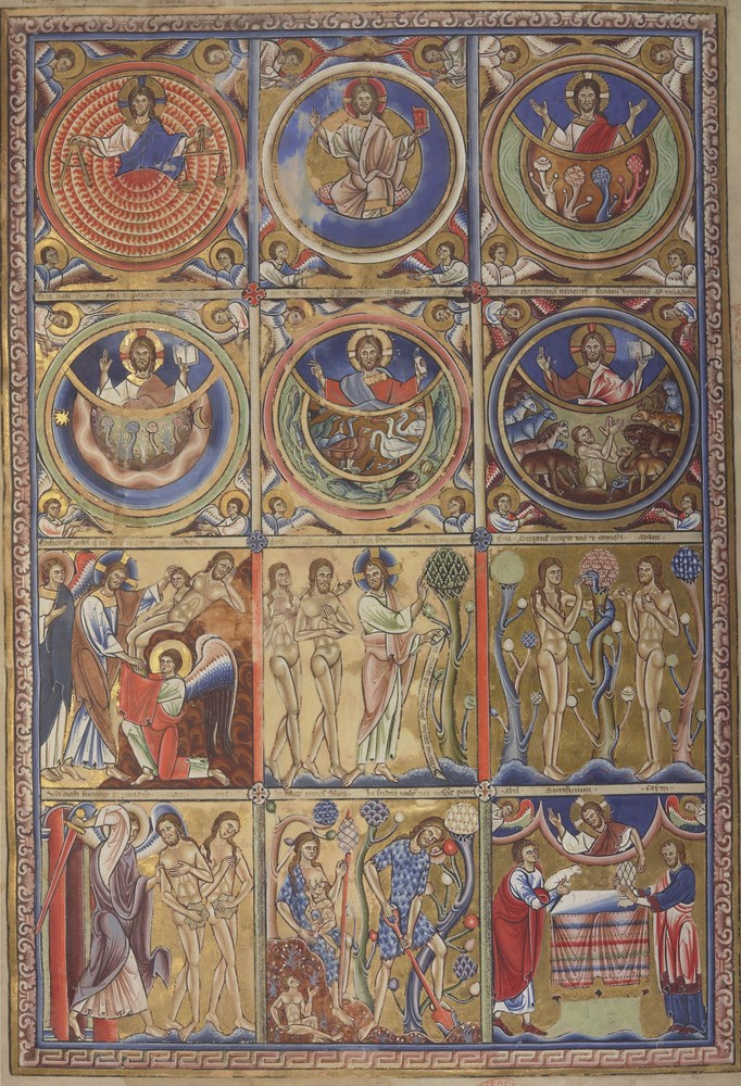 Nom : La Création de l’Univers, dans la première vignette, Dieu utilise le compas et la balance.