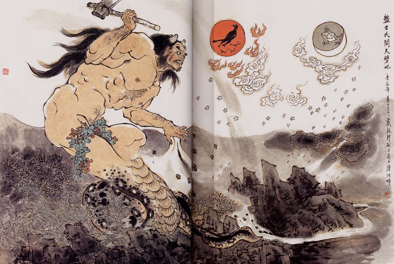 ➧ Premier être issu de l’œuf cosmique ➧ Séparateur du Yin et du Yang ➧ Transmutation de son corps en astres et éléments |